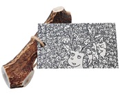 北海道産のエゾジカの鹿の角を、弊社で商品化するにあたり、北海道出身の新進気鋭のデザイナー dechi氏に、パッケージタグをデザインいただきました。鹿角にかじり付く、無数のワンコ達で満たされた圧巻の絵を描いていただきスタッフ一同、感無量です。